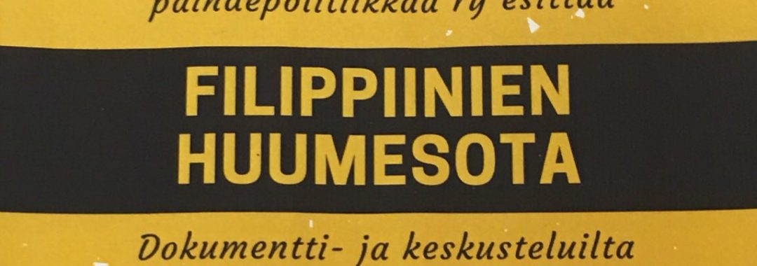 Helsingin Malminkartanossa järjestettiin 13. helmikuuta dokumentti- ja keskustelutapahtuma, jossa puitiin Filippiineillä käytävää veristä huumesotaa. Maan presidentti Rodrigo Duterte on päättänyt hyökätä kuolettavalla voimalla huumeiden kauppaa ja käyttöä vastaan, eikä poliisi epäröi käyttää asetta jahdatessaan huumerikoksista epäiltyjä. Sivullisilta uhreilta ei olla vältytty.